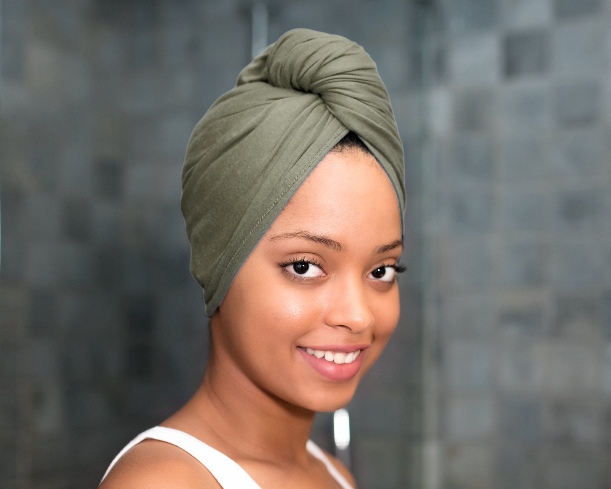T Shirt Hair Towel Wrap Khaki Olive Curly Hair Etsy